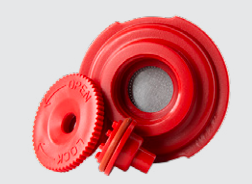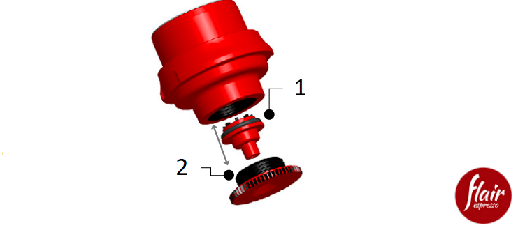 Su Flex incluye dos discos de entrenamiento (rojos); uno de ellos se instala en el émbolo. Use este disco rojo cuando haya determinado la fuerza adecuada para la palanca. El sello de aluminio del disco de entrenamiento (red) se romperá si se aplica demasiada fuerza a la palanca, lo que indica que el café molido es demasiado fino. Si el sello se rompe, el agua fluirá hacia el cabezal de preparación. Repita la prueba con un molido más grueso (pruebe con la consistencia de sal marina fina si usa un portafiltro Flow-Control) y repita la prueba con el segundo disco rojo.