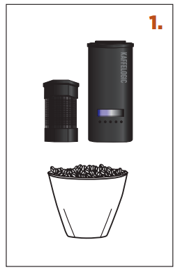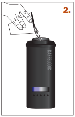 1. CUCHARÓN – utilice una cucharada rasa de judías verdes. [Utilice el cucharón proporcionado. De lo contrario, mida 120–160 ml o 90–120 g. No sobrecargue. Si usa granos descafeinados o descafeinados, son menos densos y se recomienda cargarlos por peso] |