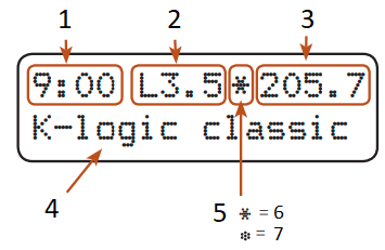 Pulse el botón "Menú" repetidamente para desplazarse por las distintas opciones de visualización. Pulse el botón "Perfil" para volver a la pantalla estándar (ver arriba).