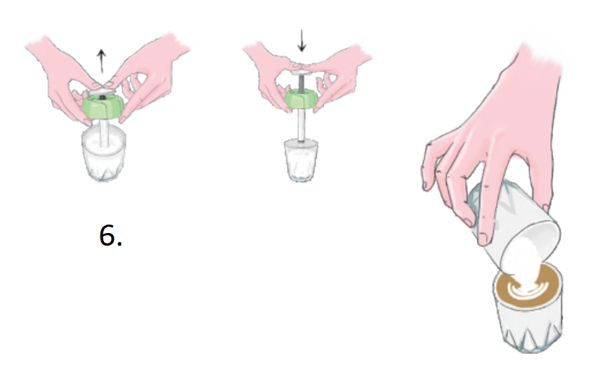 - Retire el cuerpo de la cafetera y saque la taza con su espresso.
