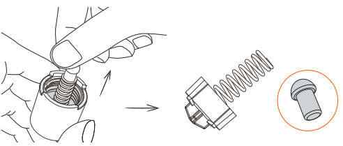 3. Retire la pequeña pieza negra de silicona ubicada dentro del resorte largo. Vuelva a montar la boquilla. Tenga cuidado de no perderla.