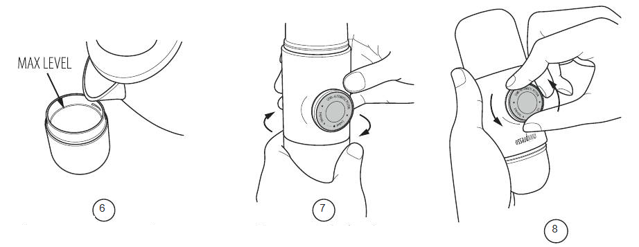 - Utilice únicamente agua limpia en el Minipresso. No utilice ningún otro líquido.