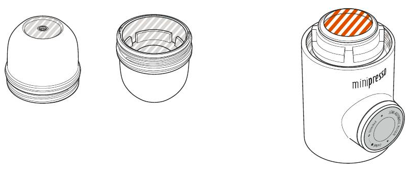 No coloque ninguna pieza MiniPresso en el lavavajillas. No vierta agua en la zona naranja.